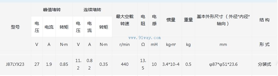 J87LYX23型永磁式直流力矩電動機