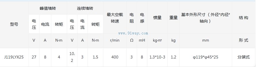 J119LYX25型永磁式直流力矩電動機