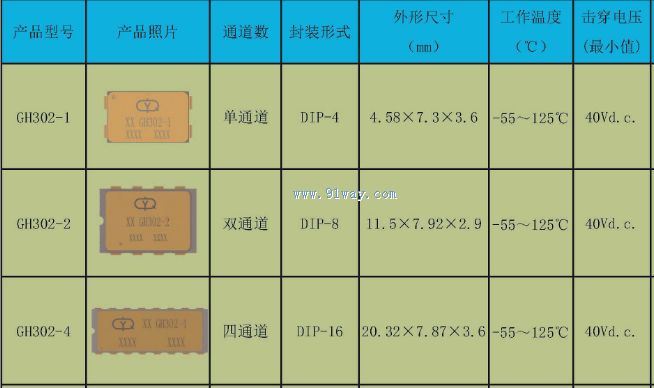 GH302-1,GH302-2,GH302-4型光電耦合器