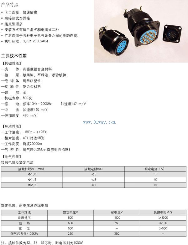 3、LYP系列圓形航空插頭機械性能: