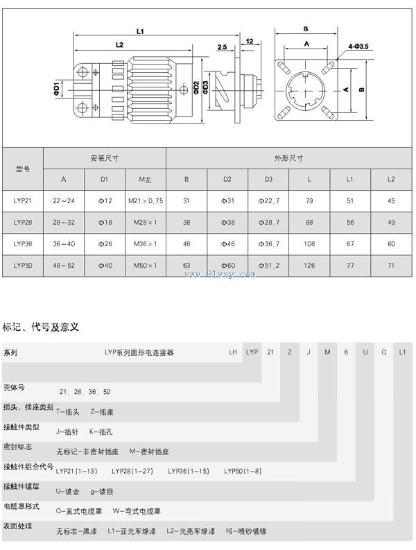 LYP系列圓形航空插頭技術參數