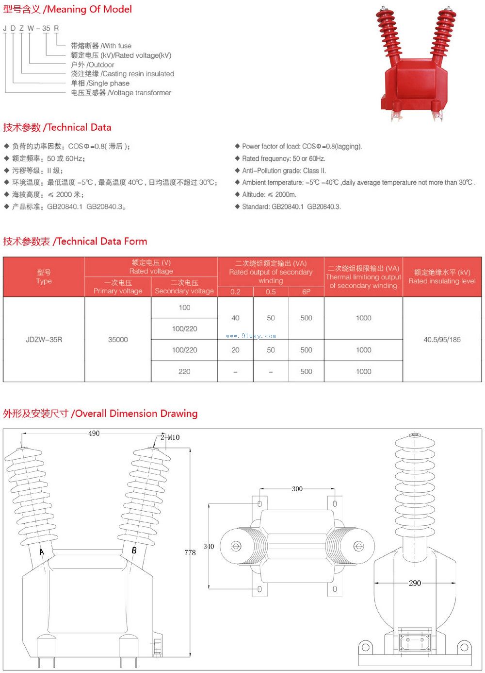 JDZW-40.5R型戶外電壓互感器