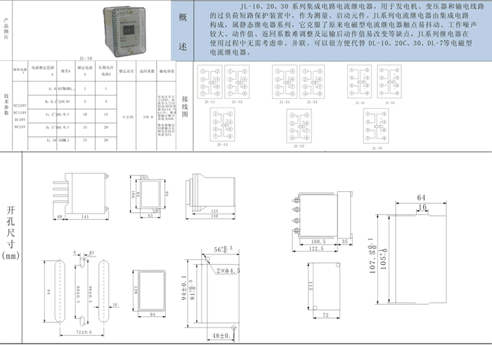JL-10、20、30 系列靜態(tài)電流繼電器用于發(fā)電機(jī)、變壓器及輸電線路的過負(fù)荷和短路的繼電保護(hù)線路中,并且本繼電器在電力系統(tǒng) CT 飽和后仍能正確動作。
