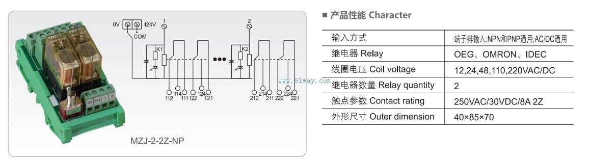 產(chǎn)品名稱: MZJ-2-NP型模組繼電器