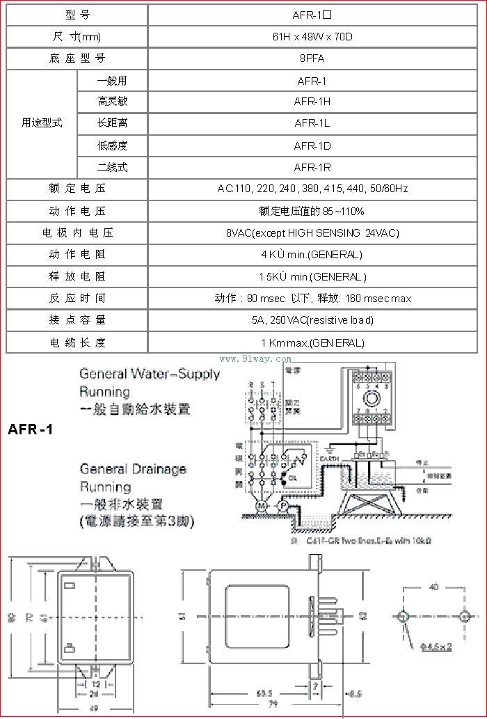 AFR-1型水位控制器技術(shù)參數(shù):AFR-1