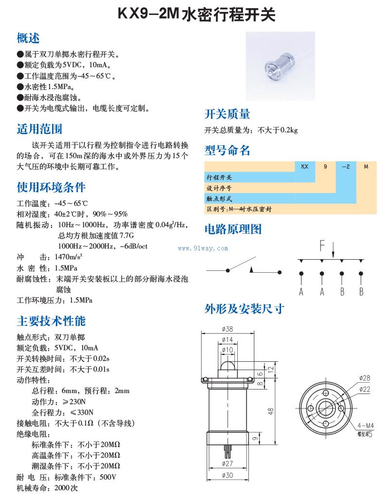 KX9-2M水密行程開(kāi)關(guān)