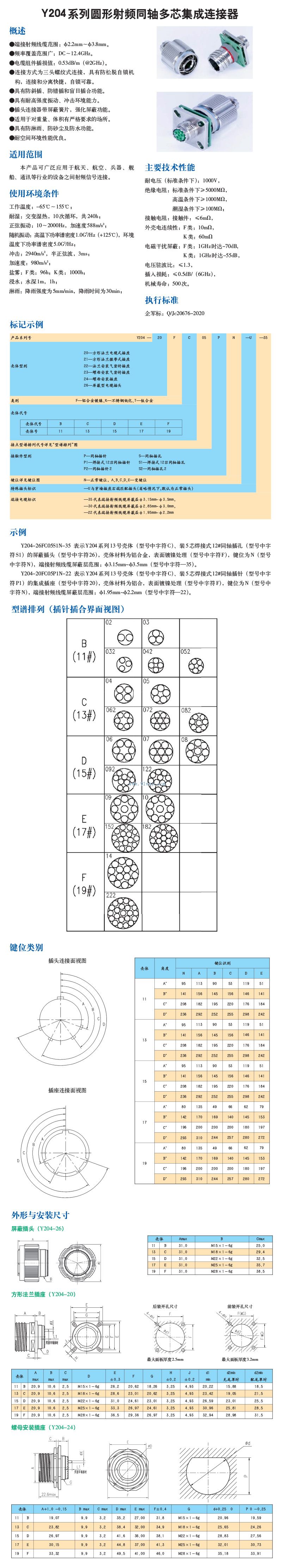 Y204系列圓形射頻同軸多芯集成連接器