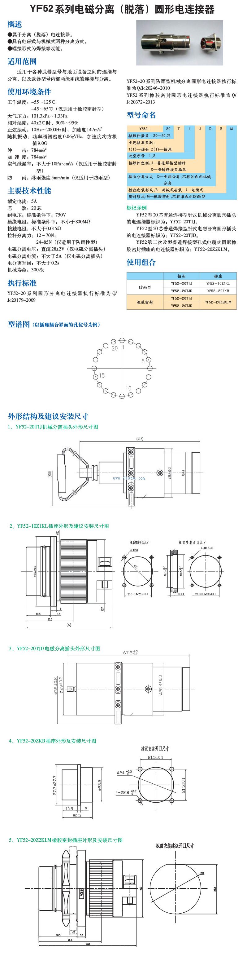YF52系列電磁分離(脫離)圓形電連接器
