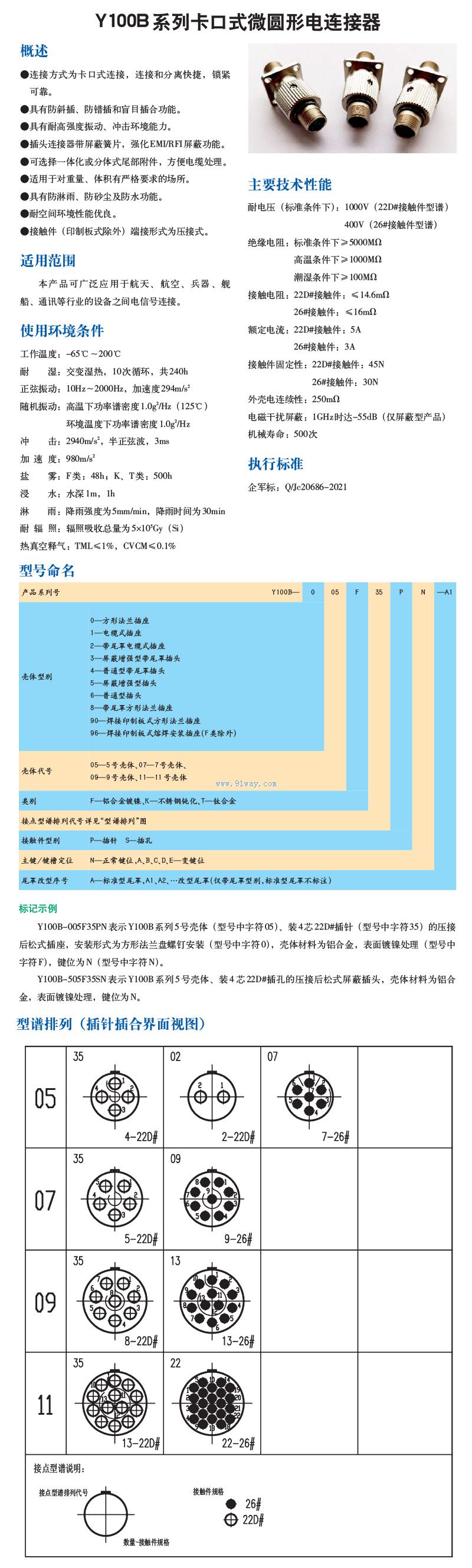 Y100B系列卡口式微圓形電連接器
