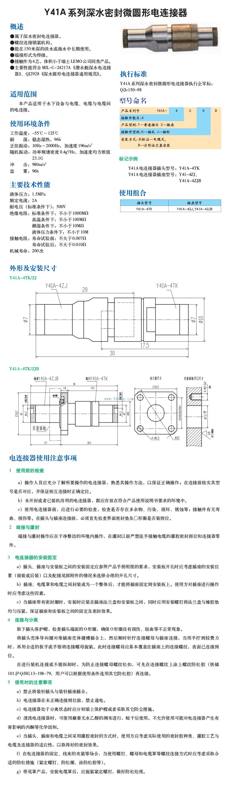 Y41A系列深水密封微圓形電連接器