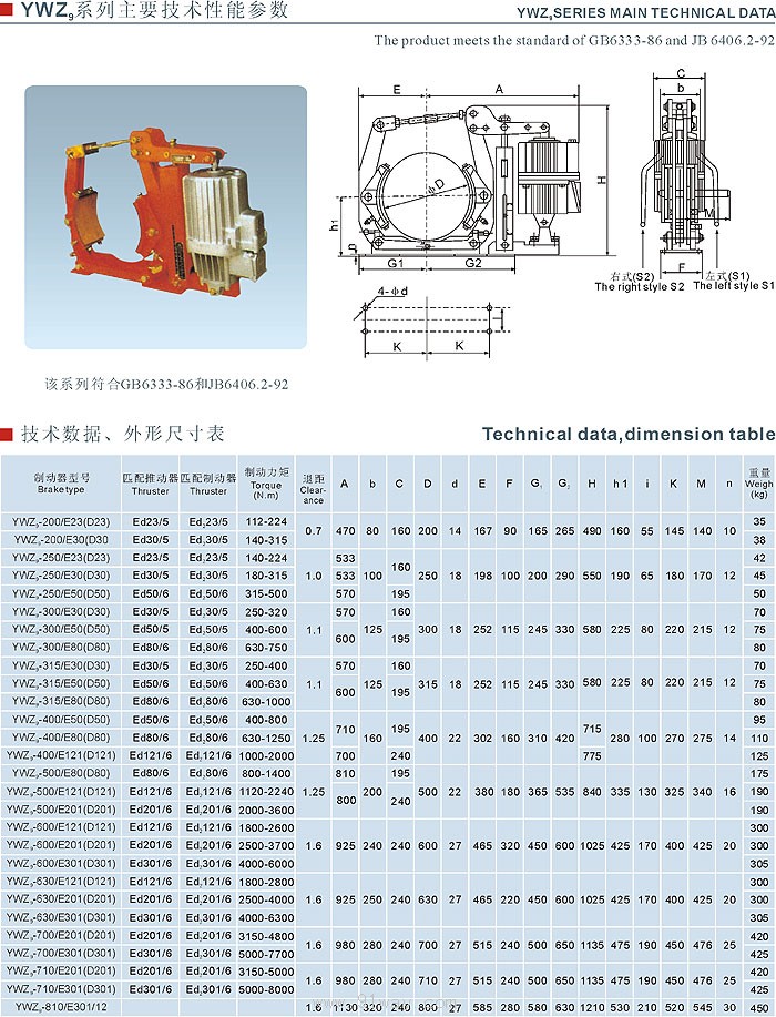 | 產品名稱: | YWZ9系列電力液壓塊式制動器 | |||||