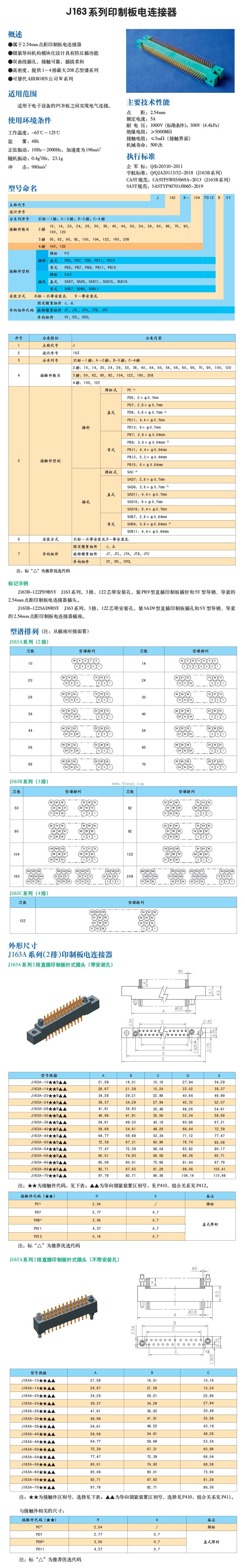 J163系列印制板電連接器