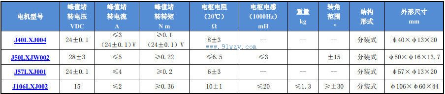 J40LXJ004型有限轉角直流力矩電機