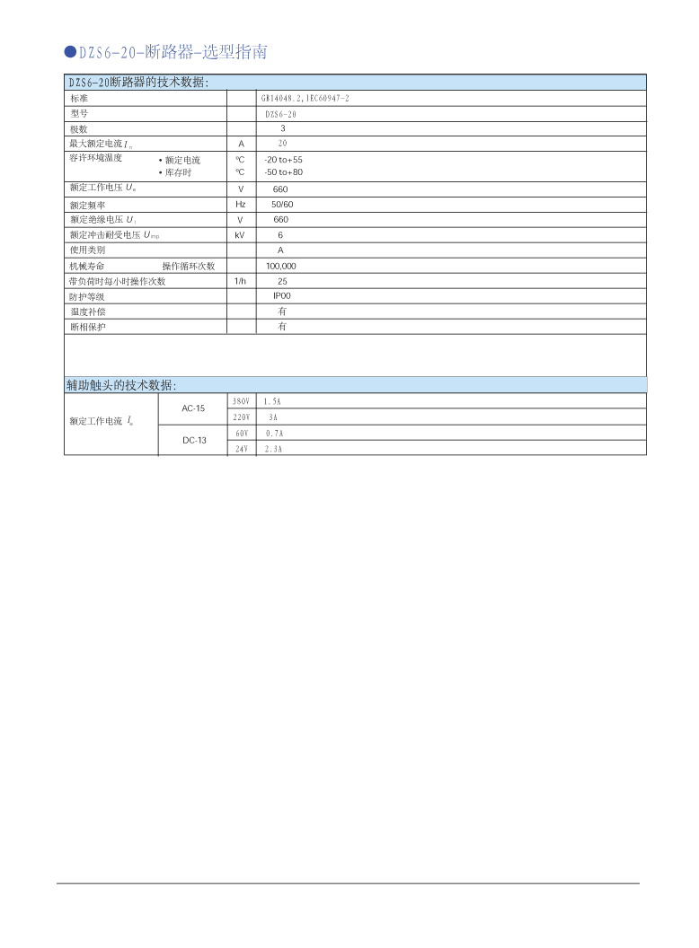 ① DZS6-20 系列斷路器集合了熱過載保護,短路保護,接通 / 分斷功能于一體。