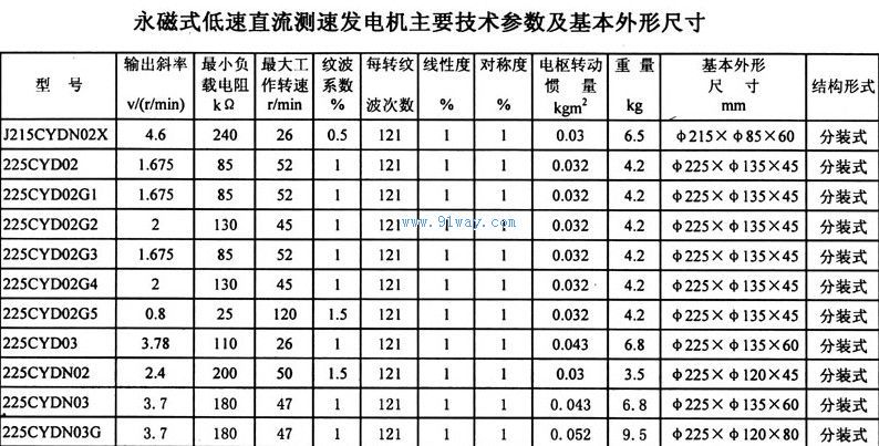 225CYD03,225CYD02G5系列永磁式低速直流測速發電機