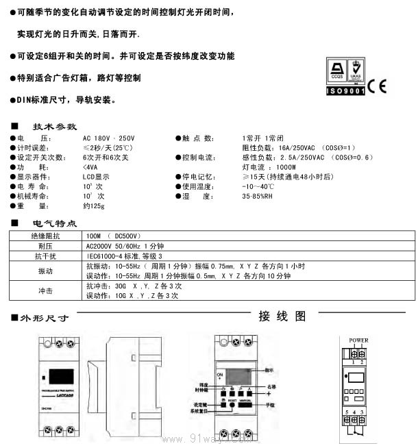 | 設定開關次數 | 6次開6次關 | 感性負載:2.5A/250VAC (COSØ=0.6) | |