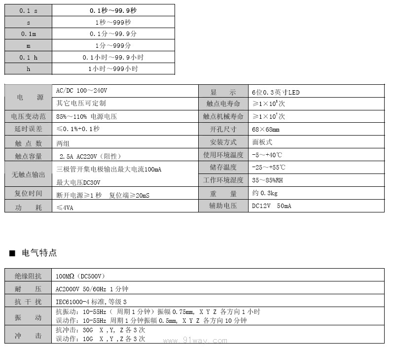 電壽命 ≥105次 特  點 雙設定,延時范圍寬