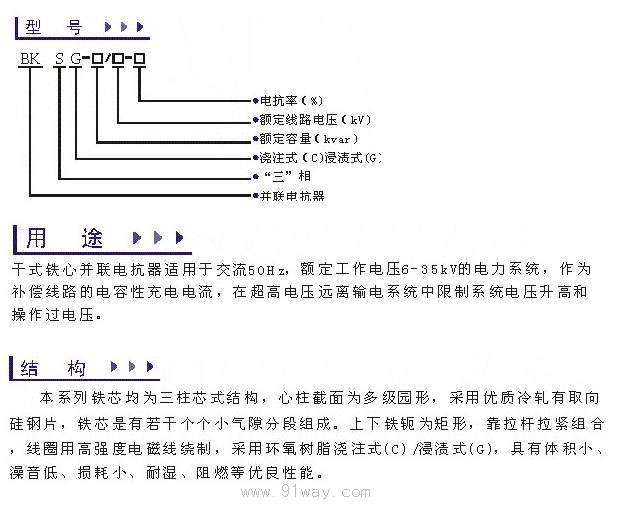 | 產品名稱: | BKSG型干式鐵芯并聯電抗器 | |||||