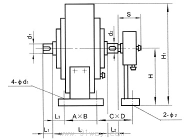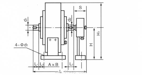| 額定轉矩N.M | 激磁電流A | 允許滑差功率W | 冷卻方式 | 磁粉量g | d(H6) | H | H1 | L | L1 | L2 | L3 | A | B | b | d | S | |