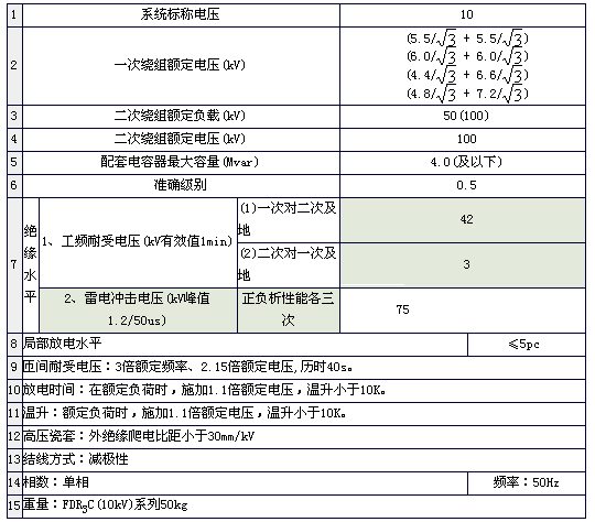 FDR3C-10KV系列全密封型放電線圈主要技術參數