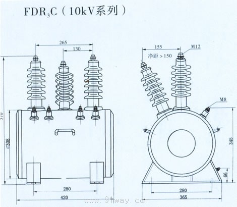 a、FDR3C戶外干式放電線圈采用兩個獨立的新型優質鐵芯,全絕緣結構及各有一個二次線圈,結構合理、功耗小、溫升低,并確保差壓保護的精確度要求。