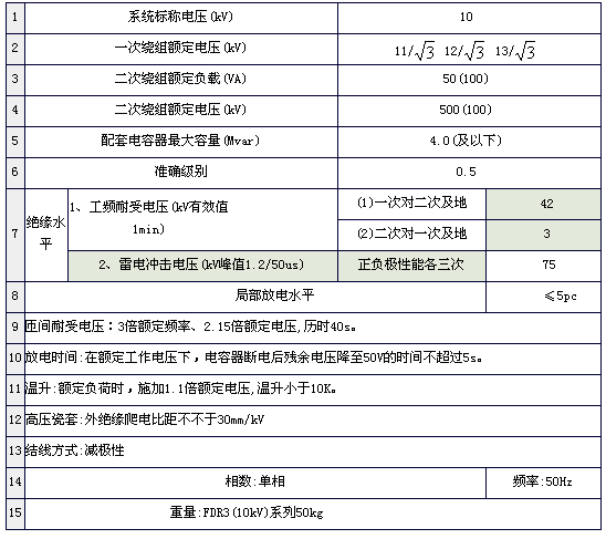 FDR3型10KV系列全密封型放電線圈主要技術(shù)參數(shù)