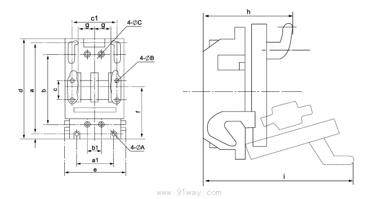 HR6系列熔斷器式隔離開關(guān)外形及安裝尺寸: