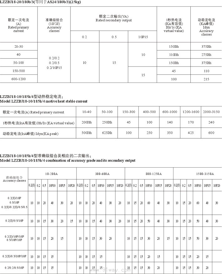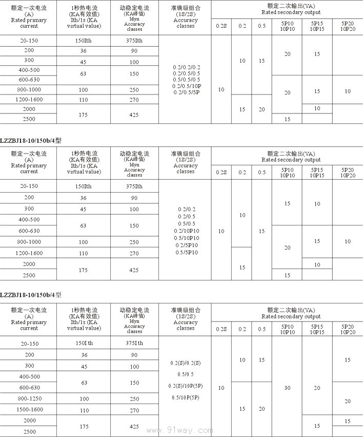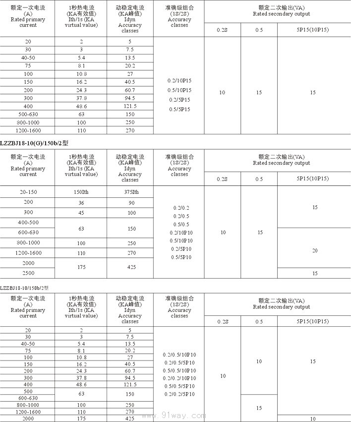 LZZBJ18-10(G)/150/185,,20/225/180電流互感器技術(shù)參數(shù)