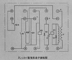 ZC-23H型沖擊繼電器用于直流及三相全波整流操作的保護與自控電路中,作集中信號用。 2.結構特點 該繼電器為微分變流器原理,電磁中間繼電器作出口元件。殼體結構選用本廠系列化設計中的JK—22K(嵌入式后接線)、JK—22H(凸出式后接線)、JK—22Q(凸出式前接線)殼體,可任選其一,詳見本手冊附錄。 3.ZC-23H型沖擊繼電器主要技術參數 4.背后端子接線