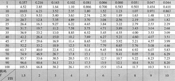 反時(shí)限延時(shí)特性表(S) HGL系列靜態(tài)反時(shí)限過(guò)流繼電器