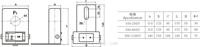 外形及安裝尺寸LMZ-0.5W系列戶外電流互感器