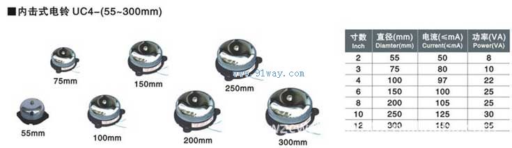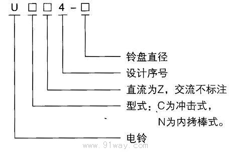 用途 UC4、UN4系列電鈴適用于工礦企業、機關學校、公共場所以及設備配套的交流50Hz、380V及以下,直流220V及以下的電路中,作呼喚或通知訊號之用。 型號含義