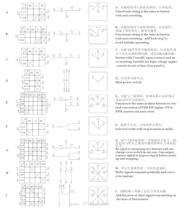 | 按鈕觸角型式 | 一常開一常閉 | 二常開 | 二常閉 |
