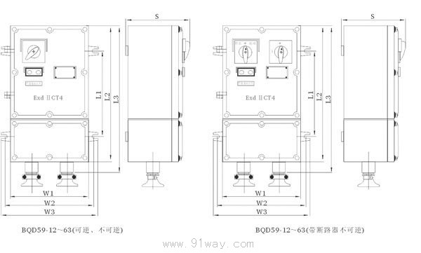 BQD59系列防爆電磁起動器(ⅡB)外形接線圖