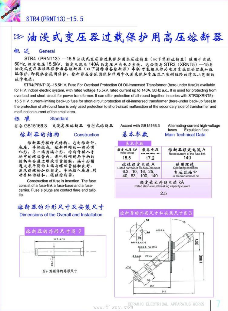 STR4-15.5型油浸式變壓器過載保護用高壓熔斷器