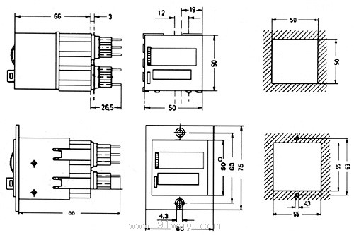 422型六位電磁預置計數器安裝尺寸圖:
