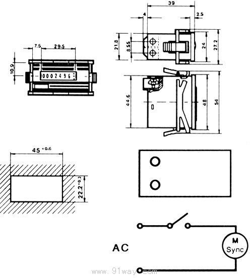 891型計時器按德國標準尺寸制造,結構緊密,彈性夾安裝。891型計時器由同步電機驅動,有各種電壓頻率規格,以適應不同的使用要求。7位顯示,最小計時單位為0.01小時(36秒)。可連續計時達11年之久,計滿后又從零開始計時,891型計時器無復零裝置,因而計入的時間值不會失去。
