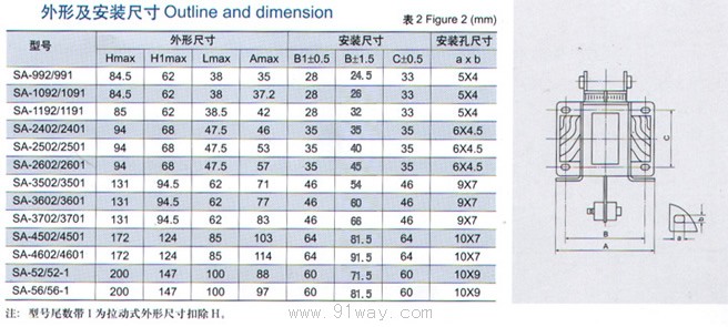 SA系列交流牽引電磁鐵外形及安裝尺寸