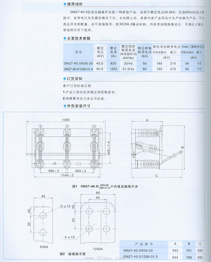 GN27-35C1-630、1250、1600隔離開關外型及安裝圖 |
