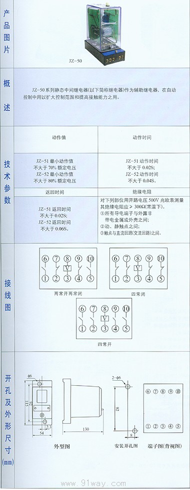 概述: JZ-50系列靜態(tài)繼電器作為輔助繼電器,在自動(dòng)控制中用以擴(kuò)大控制范圍和提高接觸能力之用。