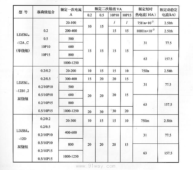 LDZBJ10-12D型電流互感器技術參數