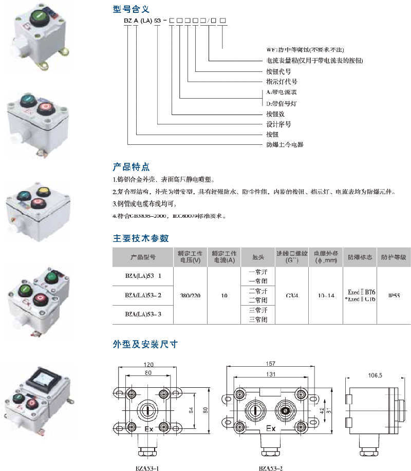 | 產(chǎn)品名稱: | BZA(LA)53防爆控制按鈕ⅡB、ⅡC | |||||