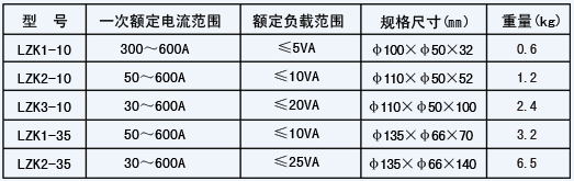 LZK1-10開啟式電流互感器具體參數詳見各型號對應的參數表。