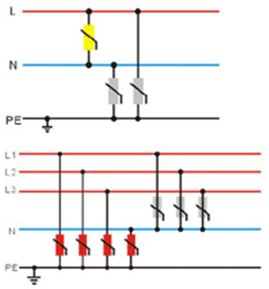 單相、三相共差模系列電涌保護器主要用于電網(wǎng)干擾較嚴重的場所,能有效地抑制電網(wǎng)中的尖峰干擾及感應(yīng)雷電波,它主要針對TT和TN-S配電系統(tǒng)所要求的相線、零線對地及相線對零線的共模、差模進行全方位保護,用于第一、二級的保護。