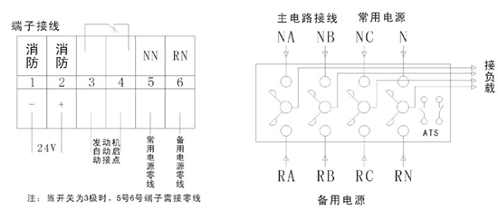 開關的進出線應按標志接線,如用3極開關時主備電源零線(NN,RN)不能接錯。否則將影響使用。