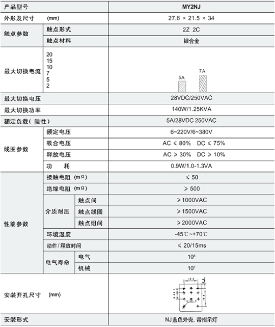 參考型號: OMRON:MY2NJ OEG:RET/SRET P&B:K10 技術參數(shù)