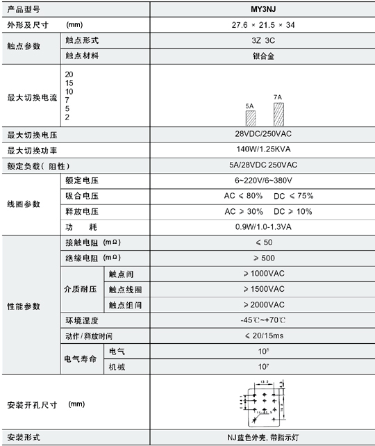 MY3NJ電磁插座式繼電器產品型號:MY3NJ 參考型號: OMRON:MY3NJ OEG:RET/SRET P&B:K10