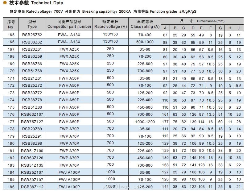 RSB□Z系列圓柱螺栓式快速熔斷器