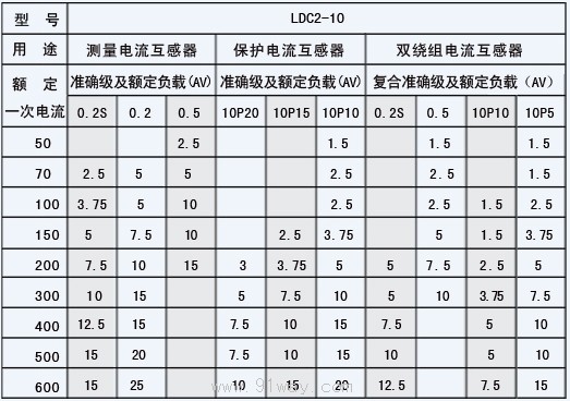 依據電流變比、準確級和額定負載的不同,該系列電流互感器分為以下幾種類型,具體參數詳見各型號對應的參數表。