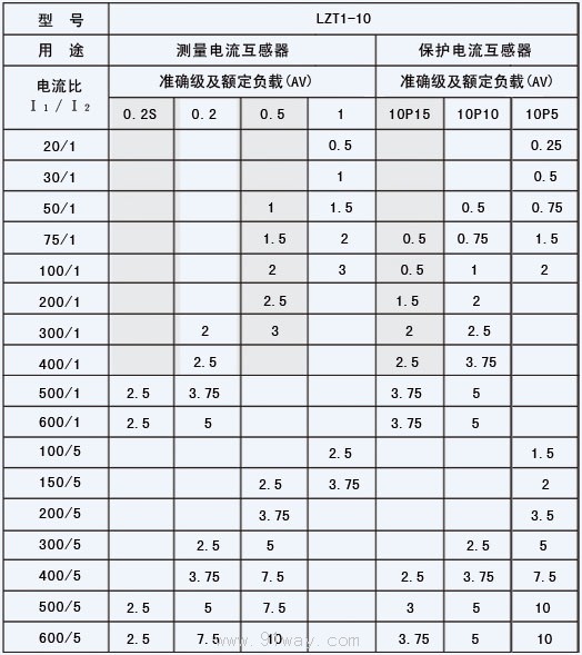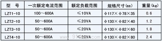 依據電流變比,準確級和額定負載的不同,該系列電流互感器分為以下幾種類型,具體參數詳見各型號對應的參數表。